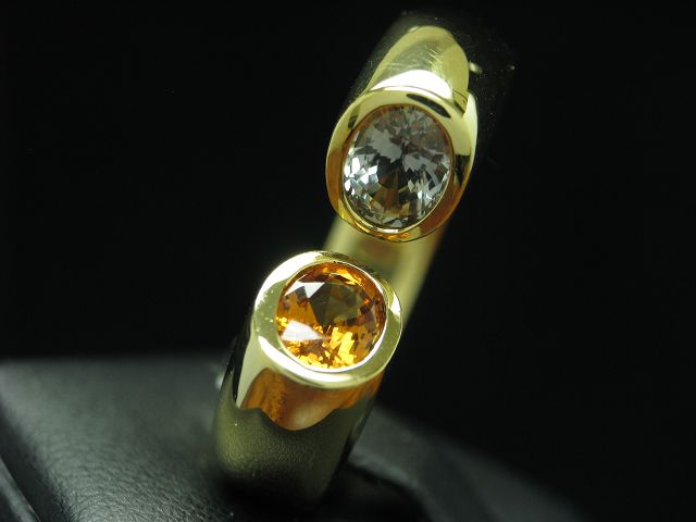18kt 750 Gelbgold Ring mit 1,30ct Citrin & 1,30ct Korund Besatz / 13,8g / RG 56