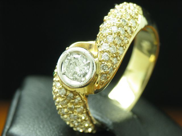14kt 585 bicolor Gold Ring mit 0,89ct Brillant Besatz / Diamant / 7,0g / RG 54