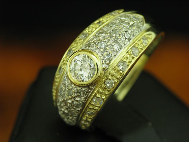 14kt 585 Gelbgold Ring mit 1,01ct Brillant Besatz / Diamant / 5,2g / RG 53,5