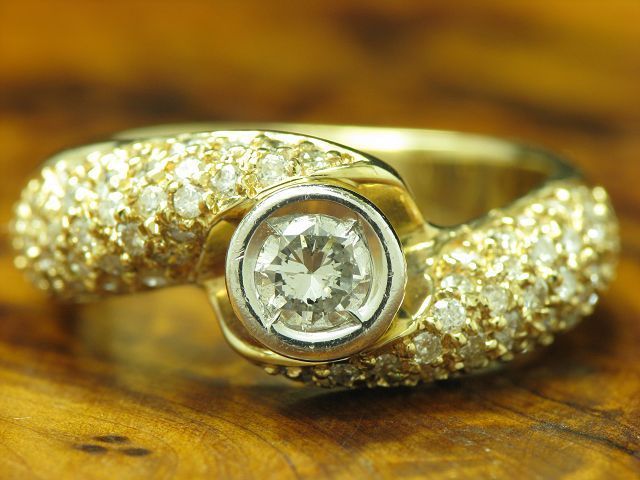 | Verkauf Schmuck Artikelnummer:123-4650 18kt 750 Gelbgold Ring mit 0,65ct Brillant & 0,40ct Diamant Besatz / RG 58 | Preis: 1.790,00 Euro |
