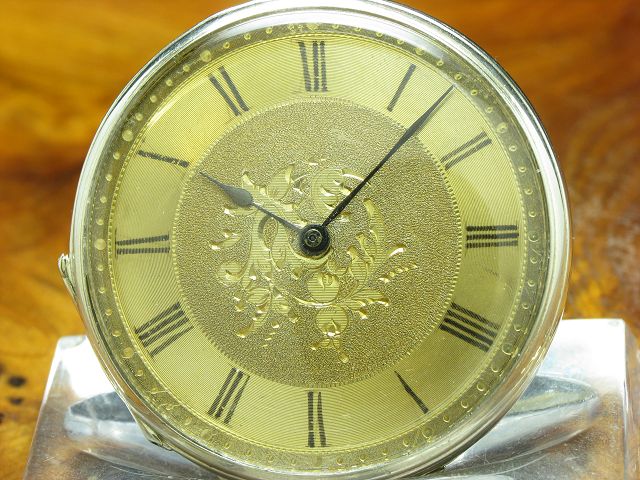 800 Silber / Gold Mantel Open Face Taschenuhr Schlüsselaufzug / florale Gravur