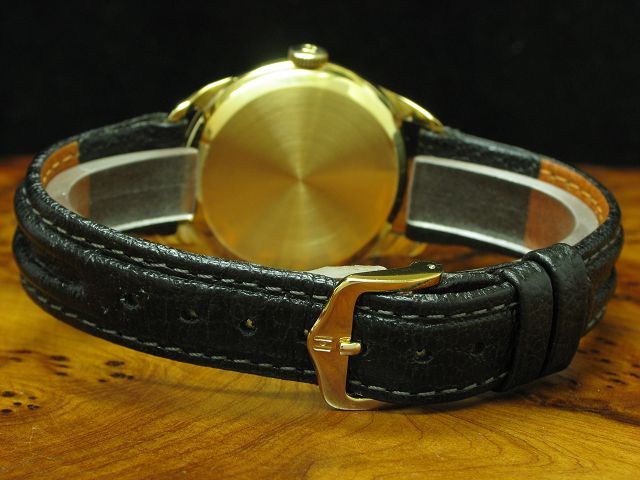 Omega 18kt 750 Gold Handaufzug Herrenuhr / Ref 2650 / Kaliber 420 Omega Baujahr ca. 1954 Traumhafte Omega Herrenuhr im 18kt. Gold Gehäuse in einem guten Erhaltungszustand. Die Uhr ist ausgestattet mit einem Two-Tone-Dial Zifferblatt mit goldenen Dauphine-Zeigern, goldenen Indexen, einer zentralen Sekunde und einem Gehäusedruckboden. Der Zeitmesser wurde in allen Bewertungskriterien vor Auktionsbeginn fachmännisch einer Prüfung unterzogen, bei der u.a. auch das Uhrwerk geprüft wurde. Angetrieben wird dieses Herrenmodell von einem Handaufzugs-Werk, welches vor Auktionsbeginn professionell geprüft wurde. Die Auslieferung erfolgt auf einem schwarzen Lederarmband mit einer vergoldeten Dornschließe. |