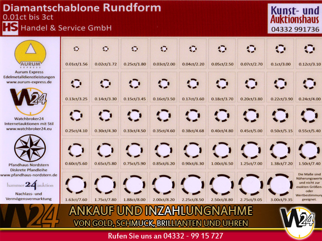 Diamant Schablone Rundform DIN A6 Gewichtsbestimmung / Diamondsheet / Goldankauf