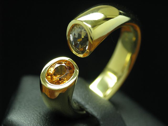 18kt 750 Gelbgold Ring mit 1,30ct Citrin & 1,30ct Korund Besatz / 13,8g / RG 56