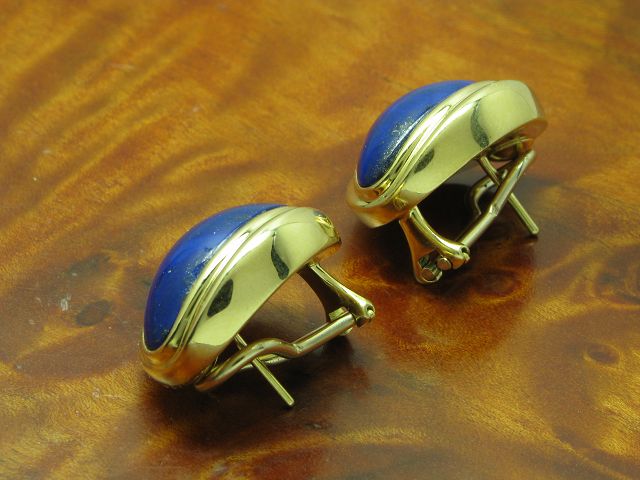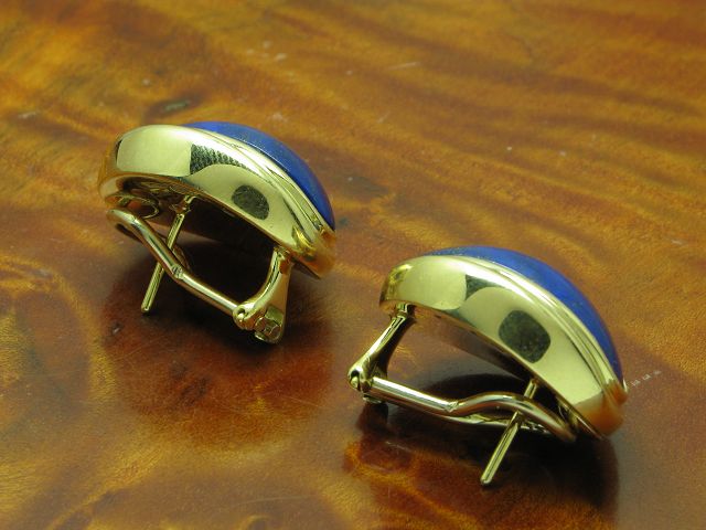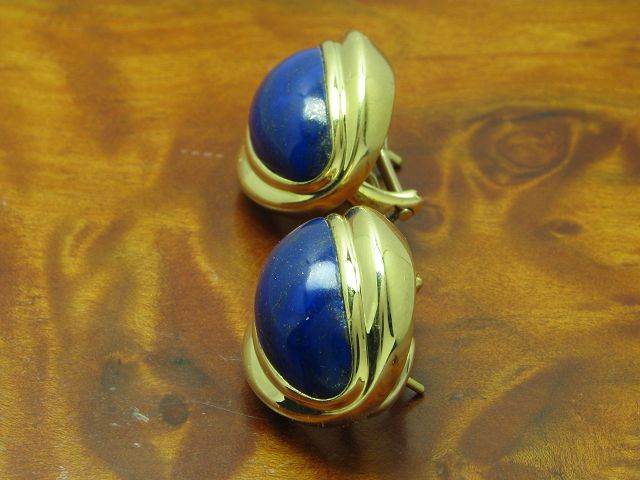 18kt 750 Gelbgold Ohrstecker mit 17,20ct Lapislazuli Besatz / Ohrringe / 16,9g