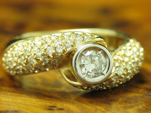 14kt 585 bicolor Gold Ring mit 0,89ct Brillant Besatz / Diamant / 7,0g / RG 54 Eleganter 14kt. Goldring mit 0,89ct. Brillant Besatz Nahezu neu und ungetragen Gelegenheit aus Privatbesitz Traumstück, aufwändig besetzt mit Brillant kombiniert mit Gelb- und Weißgold in hochfeiner Qualität. |