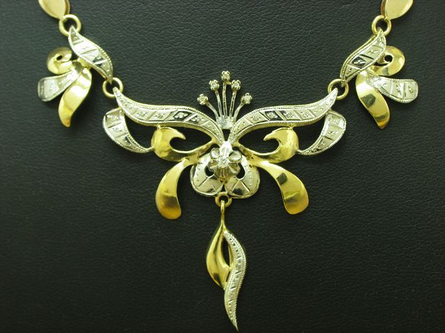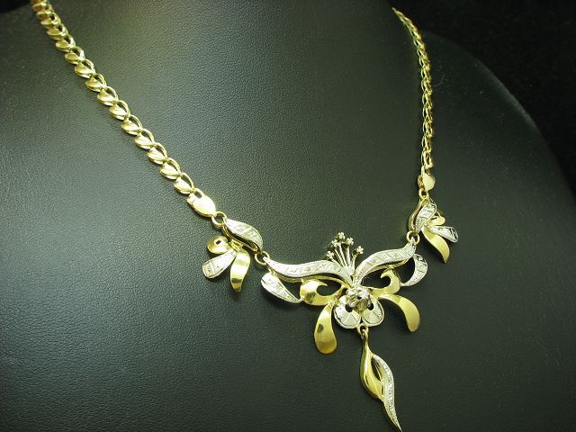 14kt 585 bicolor Gold Collier mit 0,13ct Diamant Besatz / 13,2g / 41,0cm Elegante 14kt. Gold Collier mit 0,13ct. Diamant Besatz Nahezu neu und ungetragen Gelegenheit aus Privatbesitz Traumstück, aufwändig besetzt mit Diamant kombiniert mit Gelb- und Weißgold in hochfeiner Qualität. |