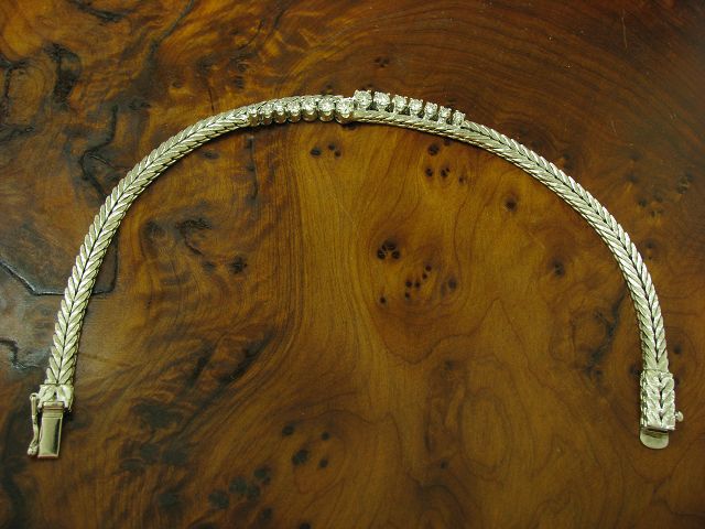 14kt 585 Weißgold Armband mit 0,77ct Brillant Besatz / Diamant / 11,8g / 17,5 cm Elegantes 14kt. Goldarmband mit 0,77ct. Brillant Besatz Nahezu neu und ungetragen Gelegenheit aus Privatbesitz Traumstück, aufwändig besetzt mit Brillant kombiniert mit Weißgold in hochfeiner Qualität. |