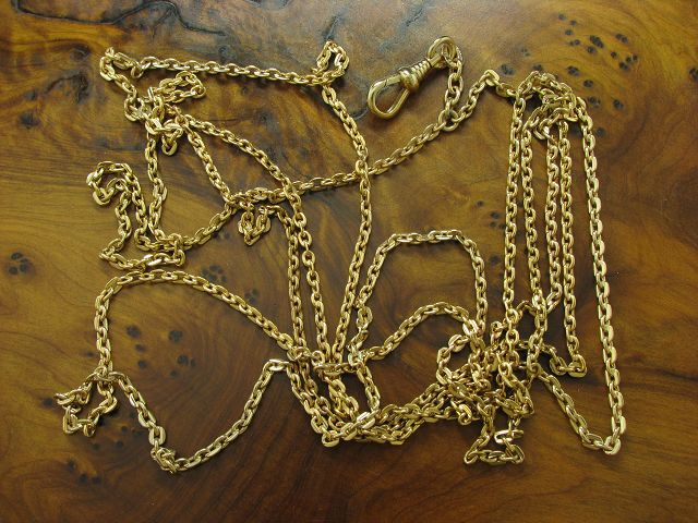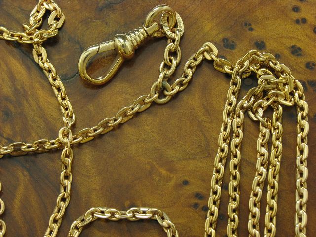 Metall Taschenuhrkette / vergoldet / zweireihig / 18,5g / 70,0cm Elegante vergoldete Taschenuhrkette Nahezu neu und ungetragen Gelegenheit aus Privatbesitz Traumstück, aufwändig aus vergoldetem Metall gearbeitet. |