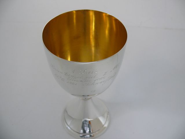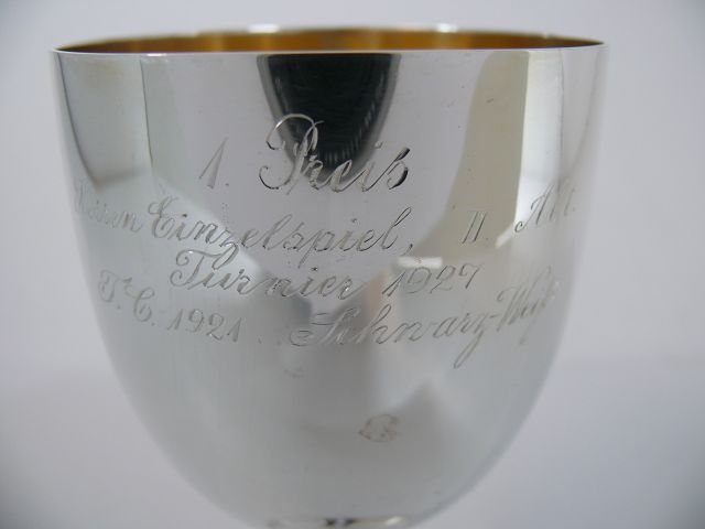 800 Silber Pokal mit Gravur & vergoldeter Innenseite / Echtsilber / 153,3g