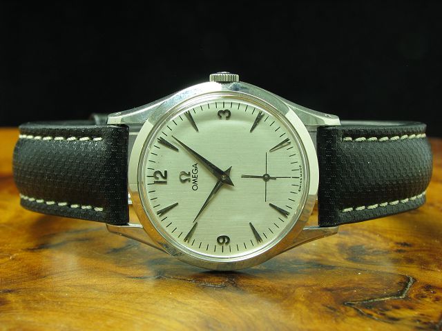 Omega Edelstahl Handaufzug Herrenuhr / Kaliber Omega 266 / Ref 2750-1 Omega Traumhafte Omega Herrenuhr im Edelstahl Gehäuse in einem guten Erhaltungszustand. Die Uhr ist ausgestattet mit einem silbernen Zifferblatt mit silbernen Zeigern, einer kleinen Sekunde auf 6 Uhr, silbernen Indexen, einer Strichminuterie im Außenbereich und einem Gehäusedruckboden. Der Zeitmesser wurde in allen Bewertungskriterien vor Auktionsbeginn fachmännisch einer Prüfung unterzogen, bei der u.a. auch das Uhrwerk geprüft wurde. Angetrieben wird dieses Herrenmodell von einem Handaufzugs-Uhrwerk. Die Auslieferung erfolgt auf einem schwarzen Lederarmband mit einer Dornschließe aus Edelstahl. |