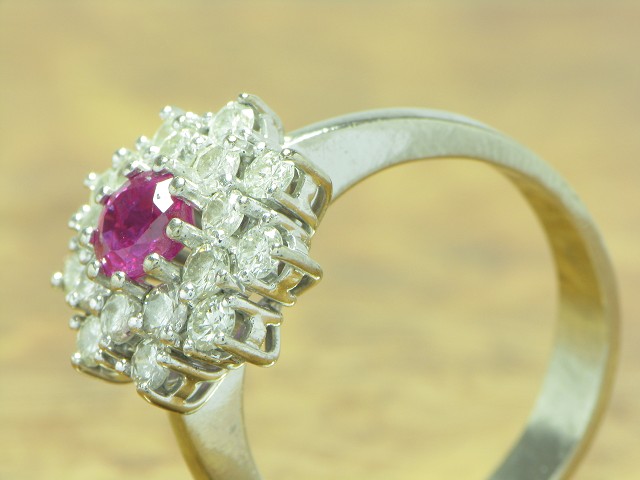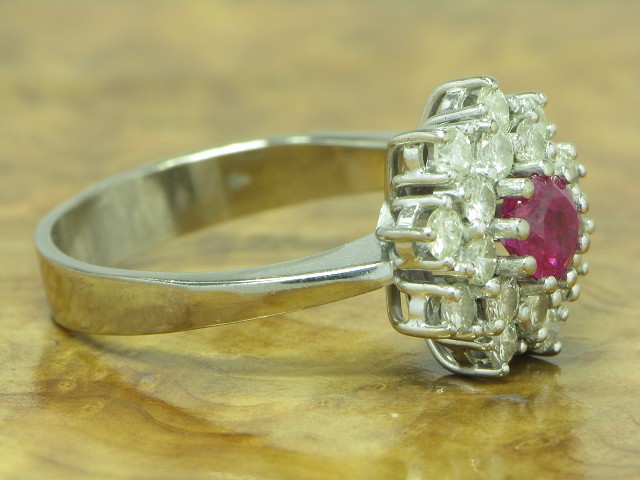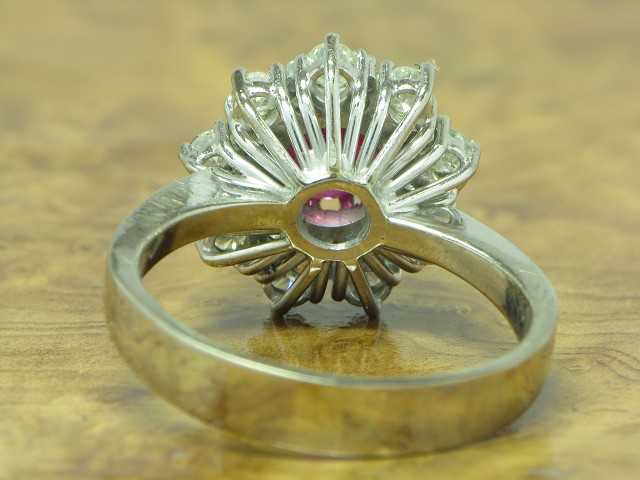 18kt 750 Weißgold Ring mit 1,26ct Brillant & 0,48ct Rubin Besatz / 8,1g / RG60,5
