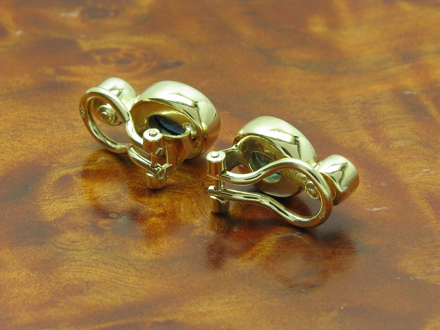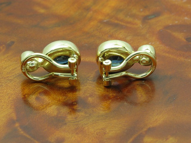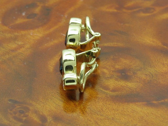 14kt 585 Gelbgold Ohrclips mit 0,28ct Brillant & 2,40ct Saphir Besatz / Ohrringe