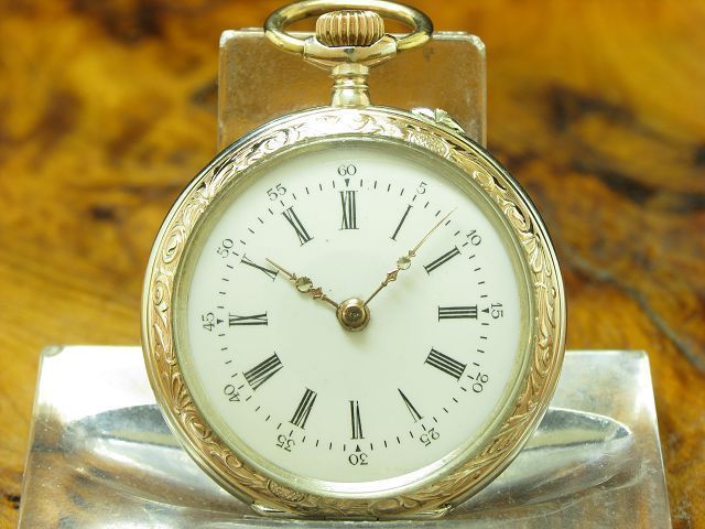 | Verkauf Taschenuhren Artikelnummer:700-118 14kt 585 Gold Open Face Taschenuhr / Anhängeuhr | Preis: 1.700,00 Euro |