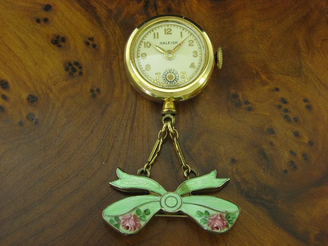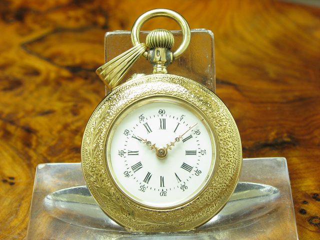 | Verkauf Taschenuhren Artikelnummer:100-2016 Raleigh Gold Mantel Open Face Taschenuhr florales Dekor | Preis: 450,00 Euro |