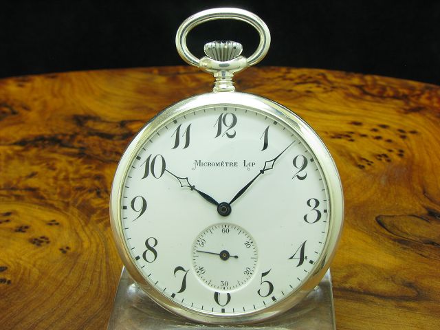 | Verkauf Taschenuhren Artikelnummer:100-43767 Micromètre Lip 925 Silber Open Face Taschenuhr / Durchmesser 50,6 mm | Preis: 650,00 Euro |